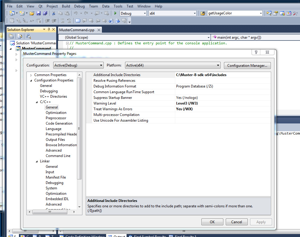 For example, assuming you've wrote a mymustercmd.cpp file and your Muster installation is available on /usr/local/muster8 , and your sdk installation at /usr/local/muster8/sdk, you compile your file with: